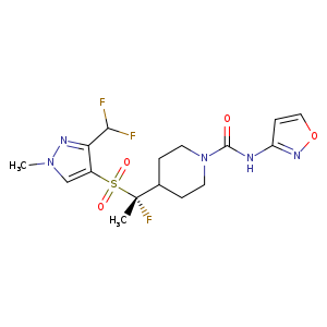 | SMILES | N1(CCC(CC1)[C@](C)(F)S(=O)(=O)c2c(nn(c2)C)C(F)F)C(=O)Nc3nocc3 |