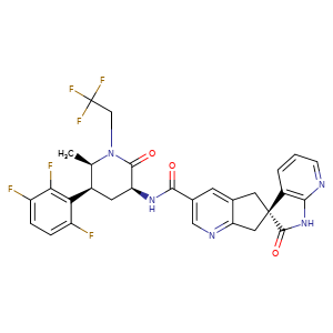 | 成分类型 | C[C@H]1N(C([C@H](C[C@H]1c2c(ccc(c2F)F)F)NC(=O)c3cc4c(nc3)C[C@]5(c6c(NC5=O)nccc6)C4)=O)CC(F)(F)F / INGREDIENT SUBSTANCE |