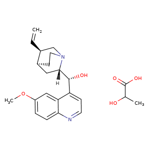 | 异名/同义词 | CINCHONAN-9-OL, 6'-METHOXY-, (8.ALPHA.,9R)-, MONO(2-HYDROXYPROPANOATE) (SALT) LACTIC ACID, COMPD. WITH QUININE (1:1) PROPANOIC ACID, 2-HYDROXY-, COMPD. WITH (8.ALPHA.,9R)-6'-METHOXYCINCHONAN-9-OL (1:1) QUININE LACTATE QUININE, MONOLACTATE (SALT)