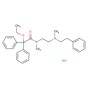 | SMILES | C(C(c1ccccc1)(c2ccccc2)OCC)(N(CCN(CCc3ccccc3)C)C)=O.Cl |