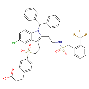 C(n1c2c(c(c1CCNS(Cc3c(C(F)(F)F)cccc3)(=O)=O)CCS(=O)(=O)c4ccc(cc4)CCC(O)=O)cc(cc2)Cl)(c5ccccc5)c6ccccc6