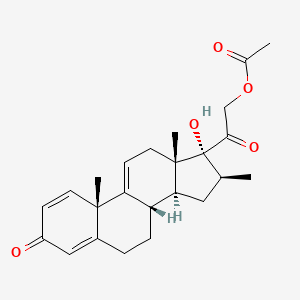 | 异名/同义词 | (16.BETA.)-21-(ACETYLOXY)-17-HYDROXY-16-METHYLPREGNA-1,4,9(11)-TRIENE-3,20-DIONE 17,21-DIHYDROXY-16.BETA.-METHYLPREGNA-1,4,9(11)-TRIENE-3,20-DIONE 21-ACETATE 21-(ACETYLOXY)-17-HYDROXY-16B-METHYL-PREGNA-1,4,9(11)-TRIENE-3,20-DIONE PREGNA-1,4,9(11)-TRIENE-3,20-DIONE, 21-(ACETYLOXY)-17-HYDROXY-16-METHYL-, (16.BETA.)- (2-((8S,10S,13S,14S,16S,17R)-17-HYDROXY-10,13,16-TRIMETHYL-3-OXO-7,8,12,14,15,16-HEXAHYDRO-6H-CYCLOPENTA(A)PHENANTHREN-17-YL)-2-OXOETHYL) ACETATE