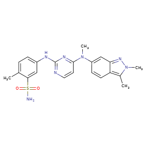 | 异名/同义词 | 5-((4-((2,3-DIMETHYL-2H-INDAZOL-6-YL)(METHYL)AMINO)PYRIMIDIN-2-YL)AMINO)-2-METHYLBENZENESULFONAMIDE BENZENESULFONAMIDE, 5-((4-((2,3-DIMETHYL-2H-INDAZOL-6-YL)METHYLAMINO)-2-PYRIMIDINYL)AMINO)-2-METHYL- GW786034 NSC-752782 PAZOPANIB PAZOPANIB [EMA EPAR] PAZOPANIB [INN] PAZOPANIB [MI] PAZOPANIB [VANDF] PAZOPANIB [WHO-DD] |