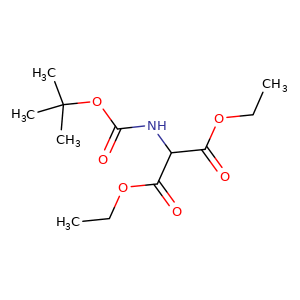 | 异名/同义词 | (N-TERT-BUTOXYCARBONYLAMINO)MALONIC ACID DIETHYL ESTER DIETHYL (BOC-AMINO)MALONATE DIETHYL (TERT-BUTOXYCARBONYLAMINO)MALONATE DIETHYL 2-((TERT-BUTOXYCARBONYL)AMINO)MALONATE DIETHYL 2-((TERT-BUTYLOXYCARBONYL)AMINO)MALONATE DIETHYL 2-(N-(TERT-BUTOXYCARBONYL)AMINO)MALONATE DIETHYL 2-TERT-BUTOXYCARBONYLAMINOMALONATE NSC-669676 PROPANEDIOIC ACID, (((1,1-DIMETHYLETHOXY)CARBONYL)AMINO)-, DIETHYL ESTER PROPANEDIOIC ACID, 2-(((1,1-DIMETHYLETHOXY)CARBONYL)AMINO)-, 1,3-DIETHYL ESTER