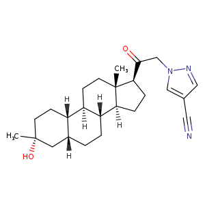 | SMILES | C[C@@]12[C@@H](C(=O)Cn3ncc(C#N)c3)CC[C@@]1([H])[C@]4([H])CC[C@]5([H])C[C@@](O)(C)CC[C@]5([H])[C@@]4([H])CC2 |
