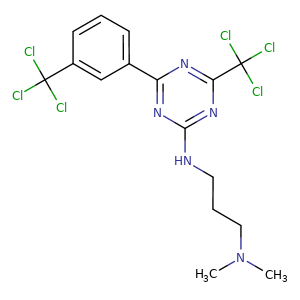 | 异名/同义词 | 1,3-PROPANEDIAMINE, N,N-DIMETHYL-N'-(4-(TRICHLOROMETHYL)-6-(3-(TRICHLOROMETHYL)PHENYL)-1,3,5-TRIAZIN-2-YL)- 1,3-PROPANEDIAMINE, N1,N1-DIMETHYL-N3-(4-(TRICHLOROMETHYL)-6-(3-(TRICHLOROMETHYL)PHENYL)-1,3,5-TRIAZIN-2-YL)- DIMETHYL(3-((4-(TRICHLOROMETHYL)-6-(3-(TRICHLOROMETHYL)PHENYL)-1,3,5-TRIAZIN-2-YL)AMINO)PROPYL)AMINE NSC-129410 S-TRIAZINE, 2-((3-(DIMETHYLAMINO)PROPYL)AMINO)-4-(TRICHLOROMETHYL)-6-(.ALPHA.,.ALPHA.,.ALPHA.-TRICHLORO-M-TOLYL)- WR-99662