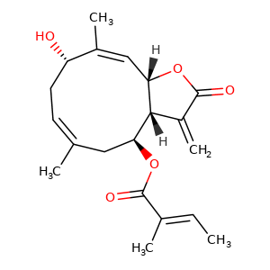 | 异名/同义词 | 2-BUTENOIC ACID, 2-METHYL-, (3AR,4S,6E,9S,10Z,11AS)-2,3,3A,4,5,8,9,11A-OCTAHYDRO-9-HYDROXY-6,10-DIMETHYL-3-METHYLENE-2-OXOCYCLODECA(B)FURAN-4-YL ESTER GERMACRA-1(10),4,11(13)-TRIEN-12-OIC ACID, 3.BETA.,6.BETA.,8.ALPHA.-TRIHYDROXY-, 12,6-LACTONE, 8-(2-METHYLCROTONATE) NOBILIN