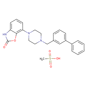 | 异名/同义词 | 2(3H)-BENZOXAZOLONE, 7-(4-((1,1'-BIPHENYL)-3-YLMETHYL)-1-PIPERAZINYL)-, MONOMETHANESULFONATE 2(3H)-BENZOXAZOLONE, 7-(4-((1,1'-BIPHENYL)-3-YLMETHYL)-1-PIPERAZINYL)-, MONOMETHANESULPHONATE 7-(4-(BIPHENYL-3-YLMETHYL)PIPERAZIN-1-YL)BENZOXAZOL-2(3H)-ONE METHANESULPHONATE 7-(4-(BIPHENYL-3-YLMETHYL)PIPERAZIN-1-YL)BENZOXAZOL-2(3H)-ONE METHANESULFONATE BIFEPRUNOX MESILATE BIFEPRUNOX MESYLATE BIFEPRUNOX MESYLATE [USAN] BIFEPRUNOX METHANESULFONATE BIFEPRUNOX METHANESULFONATE [MI] BIFEPRUNOX MESYLATE [WHO-DD] DU-127090 DU127090