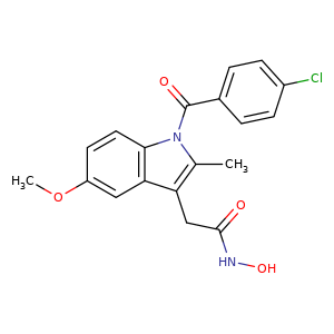 | SMILES | c12c(c(CC(NO)=O)c(n1C(c3ccc(Cl)cc3)=O)C)cc(OC)cc2 |