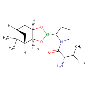 | 异名/同义词 | (2R)-1-((2S)-2-AMINO-3-METHYL-1-OXOBUTYL)-2-((3AS,4S,6S,7AR)-HEXAHYDRO-3A,5,5-TRIMETHYL-4,6-METHANO-1,3,2-BENZODIOXABOROL-2-YL)PYRROLIDINE PINANEDIOL TALABOSTAT BORONATE PYRROLIDINE, 1-((2S)-2-AMINO-3-METHYL-1-OXOBUTYL)-2-((3AS,4S,6S,7AR)-HEXAHYDRO-3A,5,5-TRIMETHYL-4,6-METHANO-1,3,2-BENZODIOXABOROL-2-YL)-, (2R)-