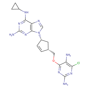| 异名/同义词 | 6-(CYCLOPROPYLAMINO)-9-((1R,4S)-4-(((2,5-DIAMINO-6-CHLOROPYRIMIDIN-4-YL)OXY)METHYL)CYCLOPENT-2-ENYL)-9H-PURINE-2-AMINE 9H-PURINE-2,6-DIAMINE, N6-CYCLOPROPYL-9-((1R,4S)-4-(((2,5-DIAMINO-6-CHLORO-4-PYRIMIDINYL)OXY)METHYL)-2-CYCLOPENTEN-1-YL)- ABACAVIR RELATED COMPOUND D [USP IMPURITY] ABACAVIR RELATED COMPOUND D [USP-RS] ABACAVIR SULFATE IMPURITY B [EP IMPURITY] ABACAVIR SULFATE IMPURITY B [WHO-IP] N6-CYCLOPROPYL-9-((1R,4S)-4-(((2,5-DIAMINO-6-CHLOROPYRIMIDIN-4-YL)OXY)METHYL)CYCLOPENT-2-EN-1-YL)-9H-PURINE-2,6-DIAMINE N6-CYCLOPROPYL-9-((1R,4S)-4-((2,5-DIAMINO-6-CHLOROPYRIMIDIN-4-YLOXY)METHYL)CYCLOPENT-2-ENYL(-9H-PURINE-2,6-DIAMINE O-PYRIMIDINE DERIVATIVE ABACAVIR [USP IMPURITY]