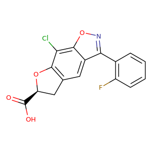 [C@@H]1(C(=O)O)Cc2c(c(Cl)c3c(c2)c(-c4ccccc4F)no3)O1