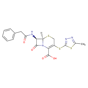 | 异名/同义词 | 5-THIA-1-AZABICYCLO(4.2.0)OCT-2-ENE-2-CARBOXYLIC ACID, 3-((5-METHYL-1,3,4-THIADIAZOL-2-YL)THIO)-8-OXO-7-((PHENYLACETYL)AMINO)-, (6R,7R)- 5-THIA-1-AZABICYCLO(4.2.0)OCT-2-ENE-2-CARBOXYLIC ACID, 3-((5-METHYL-1,3,4-THIADIAZOL-2-YL)THIO)-8-OXO-7-((PHENYLACETYL)AMINO)-, (6R-TRANS)- FR-182024