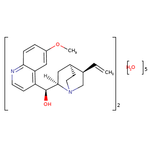 | SMILES | O.[H][C@]1([C@@H](O)c2c3c(ccc(OC)c3)ncc2)C[C@@H]4CC[N@]1C[C@@H]4C=C.O.O.O.O.[H][C@@]1(C[C@@H]2CC[N@]1C[C@@H]2C=C)[C@@H](O)c3ccnc4ccc(OC)cc43 |