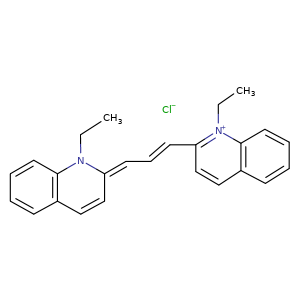 | SMILES | [Cl-].[n+]1(c2c(cccc2)ccc1/C=C/C=C\3/N(c4ccccc4C=C3)CC)CC |