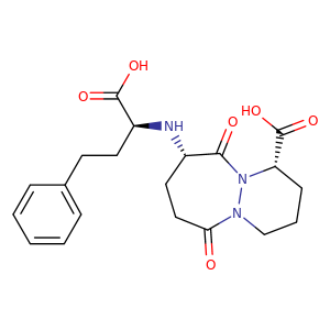 | 异名/同义词 | (1S,9S)-9-(((1S)-1-CARBOXY-3-PHENYLPROPYL)AMINO)-6,10-DIOXOOCTAHYDRO-6H-PYRIDAZINO(1,2-A)(1,2)DIAZEPINE-1-CARBOXYLIC ACID (4S,7S)-7-(((1S)-1-CARBOXY-3-PHENYLPROPYL)AMINO)-6,10-DIOXO-2,3,4,7,8,9-HEXAHYDRO-1H-PYRIDAZINO(1,2-A)DIAZEPINE-4-CARBOXYLIC ACID (4S,7S)-7-(((2S)-1-HYDROXY-1-OXO-4-PHENYLBUTAN-2-YL)AMINO)-6,10-DIOXO-2,3,4,7,8,9-HEXAHYDRO-1H-PYRIDAZINO(1,2-A)DIAZEPINE-4-CARBOXYLIC ACID (5S,8S)-5-(((1S)-1-CARBOXY-3-PHENYL-PROPYL)AMINO)-2,6-DIOXO-1,7-DIAZABICYCLO(5.4.0)UNDECANE-8-CARBOXYLIC ACID 6H-PYRIDAZINO(1,2-A)(1,2)DIAZEPINE-1-CARBOXYLIC ACID, 9-(((1S)-1-CARBOXY-3-PHENYLPROPYL)AMINO)OCTAHYDRO-6,10-DIOXO-, (1S,9S)- 6H-PYRIDAZINO(1,2-A)(1,2)DIAZEPINE-1-CARBOXYLIC ACID, 9-((1-CARBOXY-3-PHENYLPROPYL)AMINO)OCTAHYDRO-6,10-DIOXO-, (1S-(1.ALPHA.,9.ALPHA.(R*)))- RO 31-2201 RO-31-2201 RO-312201
