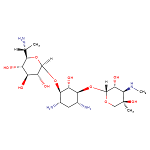 | SMILES | [C@H]1([C@H](C[C@H]([C@@H]([C@H]1O)O[C@@]2([C@@H]([C@H]([C@](CO2)(O)C)NC)O)[H])N)N)O[C@]3([C@@H]([C@H]([C@@H]([C@@H]([C@](C)([H])N)O3)O)O)O)[H] |
