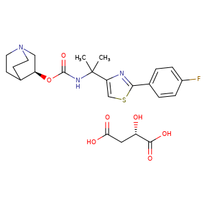 | 异名/同义词 | (2S)-2-HYDROXYBUTANEDIOIC ACID - (3S)-1- AZABICYCLO(2.2.2)OCT-3-YL (2-(2-(4-FLUOROPHENYL)-1,3-THIAZOL-4-YL)PROPAN-2-YL) CARBAMATE BUTANEDIOIC ACID, 2-HYDROXY-, (2S)-, COMPD. WITH (3S)-1-AZABICYCLO(2.2.2)OCT-3-YL N-(1-(2-(4-FLUOROPHENYL)-4-THIAZOLYL)-1-METHYLETHYL)CARBAMATE (1:1) GENZ-682452-AU GZ/SAR-402671A GZ/SAR402671A IBIGLUSTAT L-MALATE SAR-402671 L-MALATE SAR-402671A SAR402671A VENGLUSTAT L-MALATE VENGLUSTAT MALATE VENGLUSTAT MALATE [USAN]