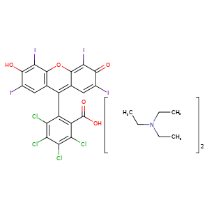 | 异名/同义词 | BENZOIC ACID, 2,3,4,5-TETRACHLORO-6-(6-HYDROXY-2,4,5,7-TETRAIODO-3-OXO-3H-XANTHEN-9-YL)-, COMPD. WITH N,N-DIETHYLETHANAMINE (1:2) ETHANAMINE, N,N-DIETHYL-, COMPD. WITH 4,5,6,7-TETRACHLORO-3',6'-DIHYDROXY-2',4',5',7'-TETRAIODOSPIRO(ISOBENZOFURAN-1(3H),9'-(9H)XANTHEN)-3-ONE (2:1) ROSE BENGAL BIS(TRIETHYLAMINE) ROSE BENGAL BIS(TRIETHYLAMMONIUM) SALT ROSE BENGAL TRIETHYLAMINE SPIRO(ISOBENZOFURAN-1(3H),9'-(9H)XANTHEN)-3-ONE, 4,5,6,7-TETRACHLORO-3',6'-DIHYDROXY-2',4',5',7'-TETRAIODO-, COMPD. WITH N,N-DIETHYLETHANAMINE (1:2)