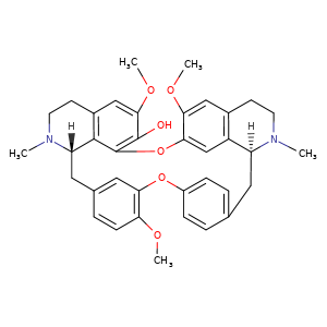 | 异名/同义词 | (1S)-6,6',12-TRIMETHOXY-2,2'-DIMETHYLBERBAMAN-7-OL 16H-1,24:6,9-DIETHENO-11,15-METHENO-2H-PYRIDO(2',3':17,18)(1,11)DIOXACYCLOEICOSINO(2,3,4-IJ)ISOQUINOLIN-22-OL, 3,4,4A,5,16A,17,18,19-OCTAHYDRO-12,21,26-TRIMETHOXY-4,17-DIMETHYL-, (4AS,16AS)- 7-O-DEMETHYLTETRANDRINE BERBAMAN-7-OL, 6,6',12-TRIMETHOXY-2,2'-DIMETHYL-, (1.BETA.)- FANGCHINOLINE HANFANGCHIN B J11.388C NSC-77036 (+)-FANGCHINOLINE (+)-LIMACINE