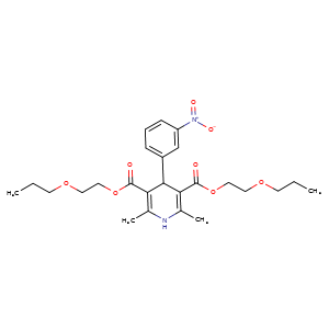 | SMILES | N1C(C)=C(C(=O)OCCOCCC)C(c2cc([N+]([O-])=O)ccc2)C(C(=O)OCCOCCC)=C1C |