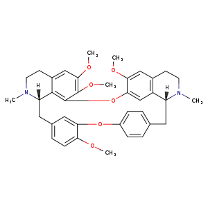 | 异名/同义词 | 16H-1,24:6,9-DIETHENO-11,15-METHENO-2H-PYRIDO(2',3':17,18)(1,11)DIOXACYCLOEICOSINO(2,3,4-IJ)ISOQUINOLINE, 3,4,4A,5,16A,17,18,19-OCTAHYDRO-12,21,22,26-TETRAMETHOXY-4,17-DIMETHYL-, (4AR,16AS)- BERBAMAN, 6,6',7,12-TETRAMETHOXY-2,2'-DIMETHYL-, (1.BETA.,1'.BETA.)- ISOTETRANDRINE, (-)- N,O-DIMETHYLPEINAMINE O-METHYLPENDULINE PENDULINE, O-METHYL- (S,R)-ISOTETRANDRINE