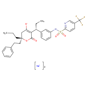 | SMILES | c1([N-]S(c2ccc(cn2)C(F)(F)F)(=O)=O)cccc(c1)[C@H](C3=C([O-])C[C@](OC3=O)(CCc4ccccc4)CCC)CC.[Na+].[Na+] |