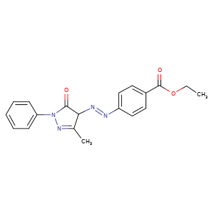| 异名/同义词 | BENZOIC ACID, 4-((4,5-DIHYDRO-3-METHYL-5-OXO-1-PHENYL-1H-PYRAZOL-4-YL)AZO)-, ETHYL ESTER BENZOIC ACID, 4-(2-(4,5-DIHYDRO-3-METHYL-5-OXO-1-PHENYL-1H-PYRAZOL-4-YL)DIAZENYL)-, ETHYL ESTER BENZOIC ACID, P-((3-METHYL-5-OXO-1-PHENYL-2-PYRAZOLIN-4-YL)AZO)-, ETHYL ESTER ETHYL 4-((3-METHYL-5-OXO-1-PHENYL-4H-PYRAZOL-4-YL)DIAZENYL)BENZOATE NSC-114439