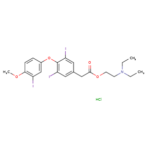 | 异名/同义词 | 2-(DIETHYLAMINO)ETHYL (3,5-DIIODO-4-(3-IODO-4-METHOXYPHENOXY)PHENYL)ACETATE HYDROCHLORIDE BENZENEACETIC ACID, 3,5-DIIODO-4-(3-IODO-4-METHOXYPHENOXY)-, 2-(DIETHYLAMINO)ETHYL ESTER, HYDROCHLORIDE SK&F 13364-A SK&F-13364-A THYROMEDAN HCL THYROMEDAN HYDROCHLORIDE THYROMEDAN HYDROCHLORIDE [USAN] TYROMEDAN HYDROCHLORIDE