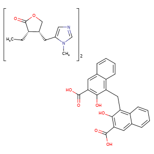 | 异名/同义词 | 2-NAPHTHALENECARBOXYLIC ACID, 4,4'-METHYLENEBIS(3-HYDROXY-, COMPD. WITH (3S-CIS)-3-ETHYLDIHYDRO-4((1-METHYL-1H-IMIDAZOL-5-YL)METHYL)-2(3H)-FURANONE (1:2) DIPILOCARPINE PAMOATE PILOCARPINE PAMOATE