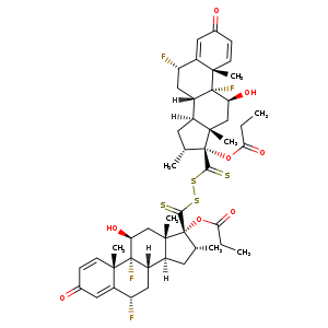 | 异名/同义词 | 17,17'-(DITHIODICARBONOTHIOYL)BIS(6,9-DIFLUORO-11-HYDROXY-16-METHYL-17-(1-OXOPROPOXY)-ANDROSTA-1,4-DIEN-3-ONE ANDROSTA-1,4-DIEN-3-ONE, 17,17'-(DITHIODICARBONOTHIOYL)BIS(6,9-DIFLUORO-11-HYDROXY-16-METHYL-17-(1-OXOPROPOXY)-, (6.ALPHA.,11.BETA.,16.ALPHA.,17.ALPHA.)-(6'.ALPHA.,11'.BETA.,16'.ALPHA.,17'.ALPHA.)-