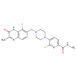 2-PYRIDINECARBOXAMIDE, 6-FLUORO-5-(4-((5-FLUORO-3,4-DIHYDRO-2-METHYL-3-OXO-6-QUINOXALINYL)METHYL)-1-PIPERAZINYL)-N-METHYL-