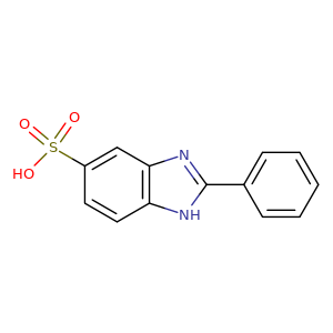 | 异名/同义词 | 1H-BENZIMIDAZOLE-5-SULFONIC ACID-2-PHENYL- 2-PHENYLBENZIMIDAZOLE-5-SULFONIC ACID [VANDF] 2-PHENYLBENZIMIDAZOLE-5-SULFONIC ACID ENSULIZOLE ENSULIZOLE [MART.] ENSULIZOLE [MI] ENSULIZOLE [USAN] ENSULIZOLE [USP MONOGRAPH] ENSULIZOLE [USP-RS] ENSULIZOLE [WHO-DD] PHENYLBENZIMIDAZOLE SULFONIC ACID ENSULIZOLE [INN] |