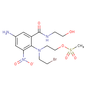 c1(cc(c(N(CCBr)CCOS(C)(=O)=O)c(c1)[N+](=O)[O-])C(=O)NCCO)N