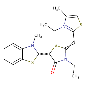 s1c([n+](c(c1)C)CC)/C=c/2\s/c(/c(n2CC)=O)=C\3/Sc4c(N3C)cccc4