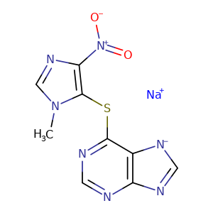 | SMILES | c1(c(Sc2c3c(nc[n-]3)ncn2)n(C)cn1)[N+]([O-])=O.[Na+] |