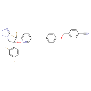 | 异名/同义词 | 4-((4-(2-(6-((2R)-2-(2,4-DIFLUOROPHENYL)-1,1-DIFLUORO-2-HYDROXY-3-(1H-TETRAZOL-1-YL)PROPYL)-3-PYRIDINYL)ETHYNYL)PHENOXY)METHYL)BENZONITRILE BENZONITRILE, 4-((4-(2-(6-((2R)-2-(2,4-DIFLUOROPHENYL)-1,1-DIFLUORO-2-HYDROXY-3-(1H-TETRAZOL-1-YL)PROPYL)-3-PYRIDINYL)ETHYNYL)PHENOXY)METHYL)- VT-1598 VT1598