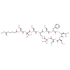 | 异名/同义词 | L-THREONINE, N2-(6-METHYL-1-OXOOCTYL)-L-2,4-DIAMINOBUTANOYL-L-THREONYL-L-2,4-DIAMINOBUTANOYL-L-2,4-DIAMINOBUTANOYL-L-2,4-DIAMINOBUTANOYL-D-PHENYLALANYL-L-LEUCYL-L-2,4-DIAMINOBUTANOYL-L-2,4-DIAMINOBUTANOYL-, CYCLIC (10->4)-PEPTIDE N2-(6-METHYL-1-OXOOCTYL)-L-2,4-DIAMINOBUTANOYL-L-THREONYL-L-2,4-DIAMINOBUTANOYL-L-2,4-DIAMINOBUTANOYL-L-2,4-DIAMINOBUTANOYL-D-PHENYLALANYL-L-LEUCYL-L-2,4-DIAMINOBUTANOYL-L-2,4-DIAMINOBUTANOYL-L-THREONINE CYCLIC (10->4)-PEPTIDE POLYMYXIN B1 POLYMYXIN B1 [MI]