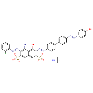 | 异名/同义词 | 2,7-NAPHTHALENEDISULFONIC ACID, 4-AMINO-3-((2-CHLOROPHENYL)AZO)-5-HYDROXY-6-((4'-((4-HYDROXYPHENYL)AZO)(1,1'-BIPHENYL)-4-YL)AZO)-, DISODIUM SALT 2,7-NAPHTHALENEDISULFONIC ACID, 4-AMINO-3-(2-(2-CHLOROPHENYL)DIAZENYL)-5-HYDROXY-6-(2-(4'-(2-(4-HYDROXYPHENYL)DIAZENYL)(1,1'-BIPHENYL)-4-YL)DIAZENYL)-, SODIUM SALT (1:2) C.I. 30285 C.I. DIRECT GREEN 10 C.I. DIRECT GREEN 10, DISODIUM SALT CI 30285 DIRECT GREEN 10 DIRECT GREEN CL