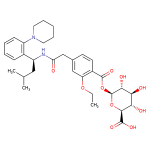 | SMILES | c1(ccc(CC(=O)N[C@@H](CC(C)C)c2ccccc2N3CCCCC3)cc1OCC)C(O[C@@H]4O[C@H](C(=O)O)[C@H]([C@@H]([C@H]4O)O)O)=O |