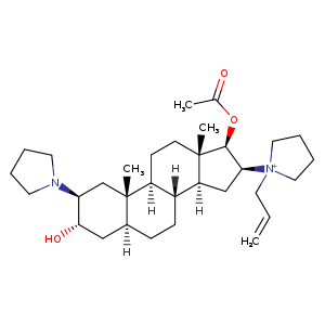 | 异名/同义词 | 1-((2.BETA.,3.ALPHA.,5.ALPHA.,16.BETA.,17.BETA.)-17-(ACETYLOXY)-3-HYDROXY-2-(1-PYRROLIDINYL)ANDROSTAN-16-YL)-1-(2-PROPEN-1-YL)PYRROLIDINIUM 1-(17.BETA.-(ACETYLOXY)-3.ALPHA.-HYDROXY-2.BETA.-(PYRROLIDIN-1-YL)-5.ALPHA.-ANDROSTAN-16.BETA.-YL)-1-(PROP-2-ENYL)PYRROLIDINIUM 1-(17.BETA.-ACETOXY-3.ALPHA.-HYDROXY-2.BETA.-(PYRROLIDIN-1-YL)-5.ALPHA.-ANDROSTAN-16.BETA.-YL)-1-(PROP-2-ENYL)PYRROLIDINIUM PIPERIDINYL ROCURONIUM PYRROLIDINIUM, 1-((2.BETA.,3.ALPHA.,5.ALPHA.,16.BETA.,17.BETA.)-17-(ACETYLOXY)-3-HYDROXY-2-(1-PYRROLIDINYL)ANDROSTAN-16-YL)-1-(2-PROPEN-1-YL)- ROCURONIUM BROMIDE IMPURITY E [EP IMPURITY] ROCURONIUM RELATED COMPOUND E [USP IMPURITY]