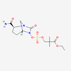 | 异名/同义词 | ARX-1796 AVIBACTAM TOMILOPIL [USAN] AVIBACTAM TOMILOPIL AVIBACTAM TOMILOPIL [WHO-DD] ETHYL 3-(((((1R,2S,5R)-2-(AMINOCARBONYL)-7-OXO-1,6-DIAZABICYCLO(3.2.1)OCT-6-YL)OXY)SULFONYL)OXY)-2,2-DIMETHYLPROPANOATE PF-07338233 PF-07612577 COMPONENT PF-07338233 PROPANOIC ACID, 3-(((((1R,2S,5R)-2-(AMINOCARBONYL)-7-OXO-1,6-DIAZABICYCLO(3.2.1)OCT-6-YL)OXY)SULFONYL)OXY)-2,2-DIMETHYL-, ETHYL ESTER AVIBACTAM TOMILOPIL [INN] ETHYL 3-(((((1R,2S,5R)-2-CARBAMOYL-7-OXO-1,6-DIAZABICYCLO(3.2.1)OCTAN-6-YL)OXY)SULFONYL)OXY)-2,2-DIMETHYLPROPANOATE