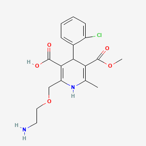 | 异名/同义词 | 3,5-PYRIDINEDICARBOXYLIC ACID, 2-((2-AMINOETHOXY)METHYL)-4-(2-CHLOROPHENYL)-1,4-DIHYDRO-6-METHYL-, 5-METHYL ESTER 5-METHYL 2-((2-AMINOETHOXY)METHYL)-4-(2-CHLOROPHENYL)-1,4-DIHYDRO-6-METHYL-3,5-PYRIDINEDICARBOXYLATE 5-O-DESETHYL AMLODIPINE DESETHYL AMLODIPINE