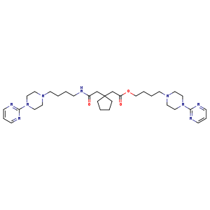 | 物质名称 | 4-(4-(PYRIMIDIN-2-YL)PIPERAZIN-1-YL)BUTYL (1-(2-OXO-2-((4-(4-(PYRIMIDIN-2-YL)PIPERAZIN-1-YL)BUTYL)AMINO)ETHYL)CYCLOPENTYL)ACETATE |