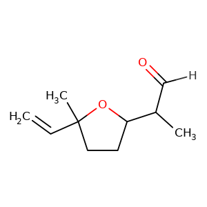 | 异名/同义词 | (+/-)-2-(5-METHYL-5-VINYL TETRAHYDROFURAN-2-YL) PROPIONALDEHYDE [FHFI] (+/-)-2-(5-METHYL-5-VINYL-TETRAHYDROFURAN-2-YL)PROPIONALDEHYDE (+/-)-LILAC ALDEHYDE 2-FURANACETALDEHYDE, 5-ETHENYLTETRAHYDRO-.ALPHA.,5-DIMETHYL- FEMA NO. 4058 LILAC ALDEHYDE TETRAHYDRO-.ALPHA.,5-DIMETHYL-5-VINYL-2-FURANACETALDEHYDE
