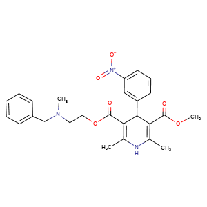 | SMILES | CC1=C(C(c2cccc(c2)[N+](=O)[O-])C(=C(C)N1)C(=O)OCCN(C)Cc3ccccc3)C(=O)OC |