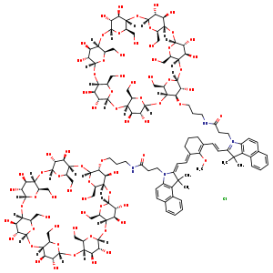 C=1(/C=C/C2=[N+](CCC(NCCCO[C@H]3[C@@]4(O[C@]5(O[C@@H]([C@](O[C@]6(O[C@@H]([C@](O[C@]7(O[C@@H]([C@](O[C@@]8([C@@H]([C@H]([C@@](O[C@@]9([C@@H]([C@H]([C@@](O[C@@]%10([C@@H]([C@H]([C@@](O[C@](O[C@@H]4CO)([H])[C@@H]3O)([H])[C@H](O%10)CO)O)O)[H])([H])[C@H](O9)CO)O)O)[H])([H])[C@H](O8)CO)O)O)[H])([H])[C@@H]([C@H]7O)O)CO)[H])([H])[C@@H]([C@H]6O)O)CO)[H])([H])[C@@H]([C@H]5O)O)CO)[H])[H])=O)c%11c(c%12c(cc%11)cccc%12)C2(C)C)CCCC(=C/C=C/%13\C(C)(C)c%14c(ccc%15c%14cccc%15)N%13CCC(=O)NCCCO[C@@H]%16[C@H]([C@@]%17(O[C@@]%18([C@@H]([C@H]([C@@](O[C@]%19(O[C@H](CO)[C@](O[C@]%20(O[C@@H]([C@](O[C@]%21(O[C@@H]([C@](O[C@]%22(O[C@@H]([C@](O[C@@]%23([C@@H]([C@H]([C@@](O[C@@]%16([H])O[C@@H]%17CO)([H])[C@H](O%23)CO)O)O)[H])([H])[C@@H]([C@H]%22O)O)CO)[H])([H])[C@@H]([C@H]%21O)O)CO)[H])([H])[C@@H]([C@H]%20O)O)CO)[H])([H])[C@@H]([C@H]%19O)O)[H])([H])[C@H](O%18)CO)O)O)[H])[H])O)C1OC.[Cl-]