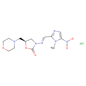| SMILES | Cl.c1(ncc(n1C)[N+]([O-])=O)/C=N/N2C(=O)O[C@@H](CN3CCOCC3)C2 |