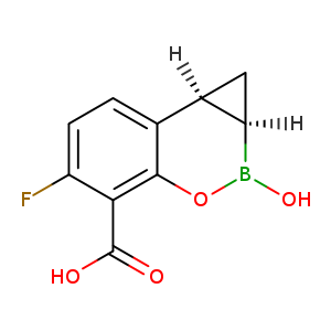 | 异名/同义词 | (1AR,7BS)-5-FLUORO-1,1A,2,7B-TETRAHYDRO-2-HYDROXYBENZO(E)CYCLOPROP(C)(1,2)OXABORIN-4-CARBOXYLIC ACID BENZO(E)CYCLOPROP(C)(1,2)OXABORIN-4-CARBOXYLIC ACID, 5-FLUORO-1,1A,2,7B-TETRAHYDRO-2-HYDROXY-, (1AR,7BS)- XERUBORBACTAM [USAN] XERUBORBACTAM XERUBORBACTAM [INN]