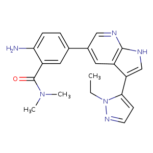 c1(c[nH]c2c1cc(cn2)-c3cc(C(=O)N(C)C)c(N)cc3)-c4ccnn4CC